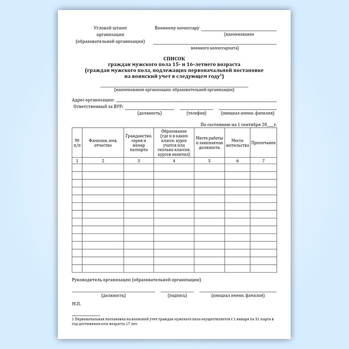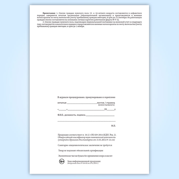 Журнал списков граждан мужского пола 15- и 16-летнего возраста (граждан мужского пола, подлежащих первоначальной постановке на воинский учет в следующем году) в Химках купить