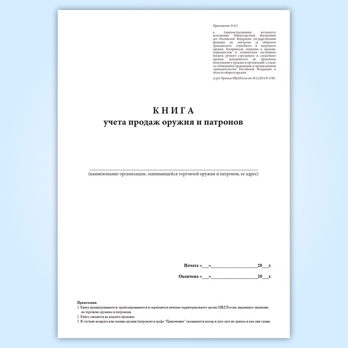 Книга учета продаж оружия и патронов (Приказ МВД России от 29.06.2012 N 646) в Химках купить