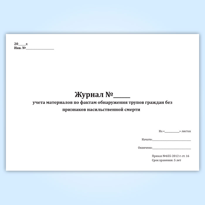 Журнал учета материалов по фактам обнаружения трупов граждан без признаков насильственной смерти в Химках купить