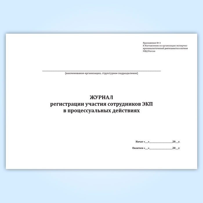 Журнал регистрации участия сотрудников ЭКП в процессуальных действиях в Химках купить