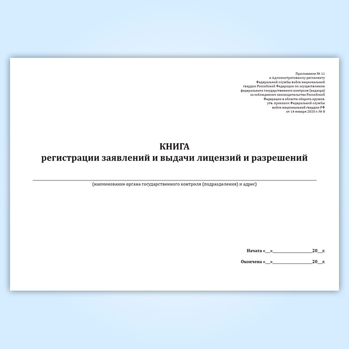 Книга регистрации заявлений и выдачи лицензий и разрешений (Приказ Росгвардии от 14.01.2020 N 8) в Химках купить