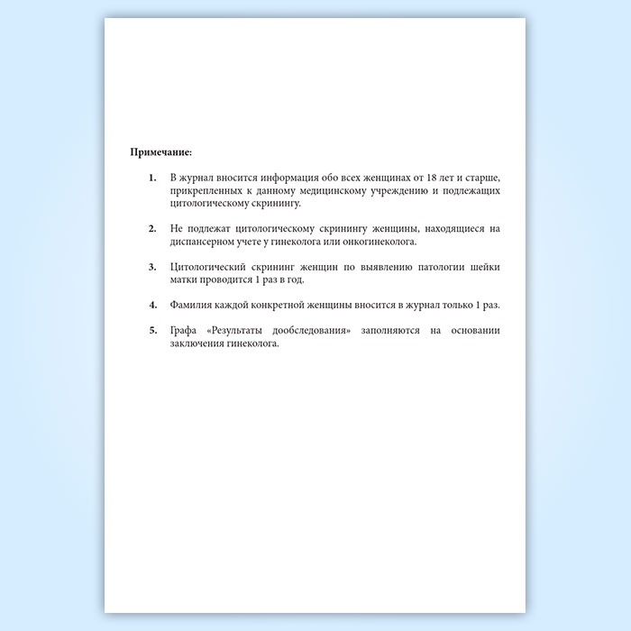 Журнал учета цитологического скрининга женщин по выявлению патологии шейки матки в Химках купить
