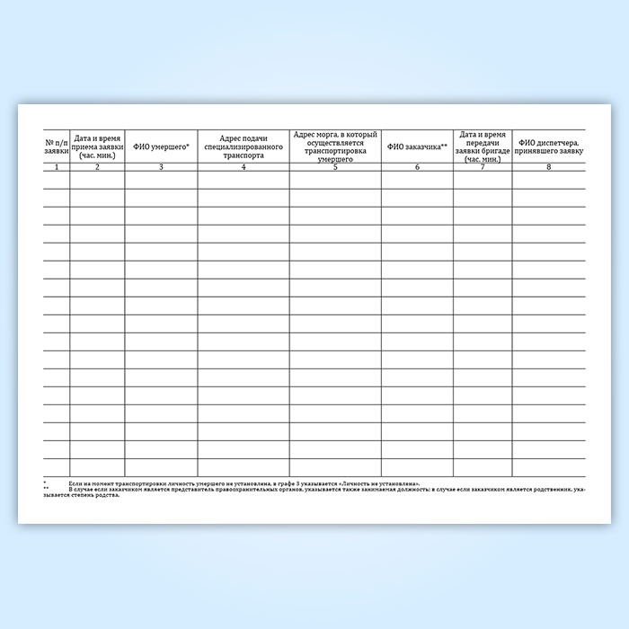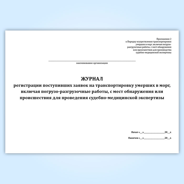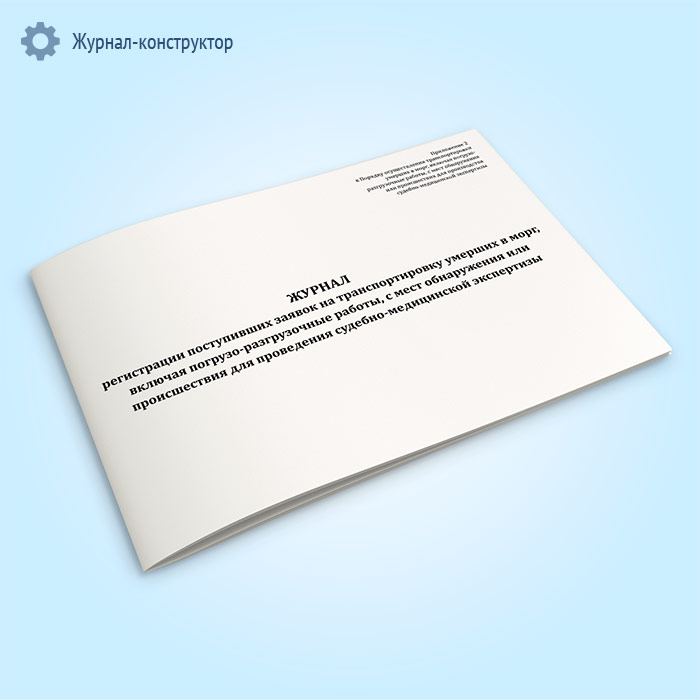 Журнал регистрации поступивших заявок на транспортировку умерших в морг, включая погрузо-разгрузочные работы, с мест обнаружения или происшествия для проведения судебно-медицинской экспертизы в Химках купить