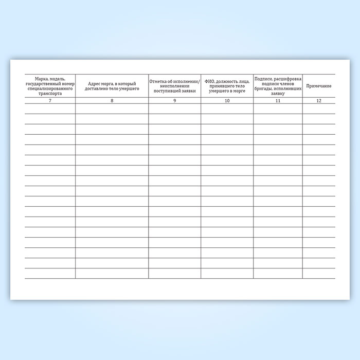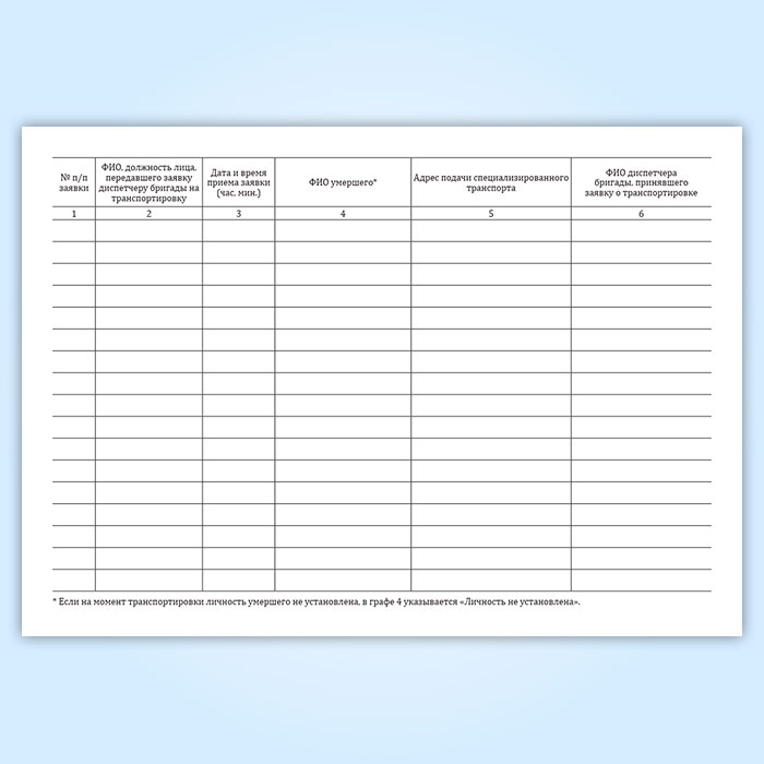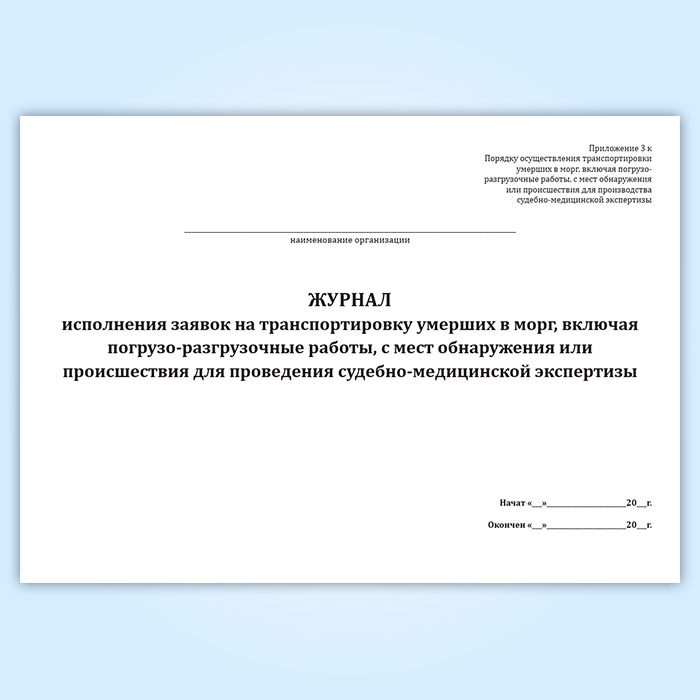 Журнал исполнения заявок на транспортировку умерших в морг, включая погрузо-разгрузочные работы, с мест обнаружения или происшествия для проведения судебно-медицинской экспертизы в Химках купить