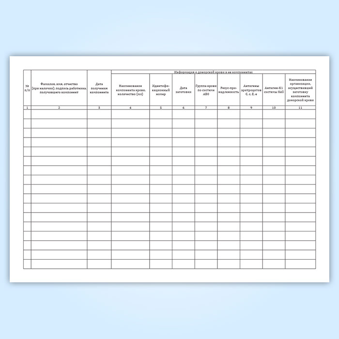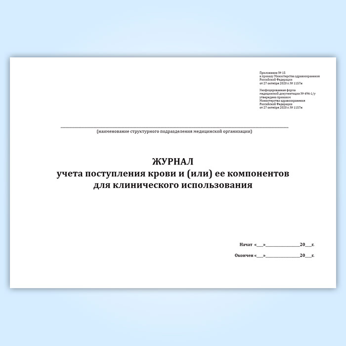 Журнал учета поступления крови и (или) ее компонентов для клинического использования (форма № 494-1/у) в Химках купить