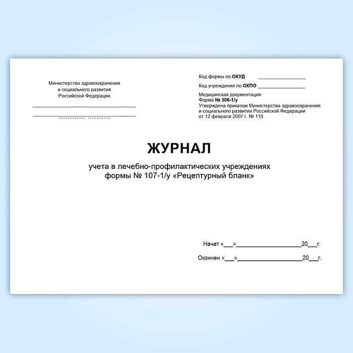 Журнал учета в лечебно-профилактических учреждениях рецептурных бланков формы № 107-1/у (форма № 306-1/у) в Химках купить