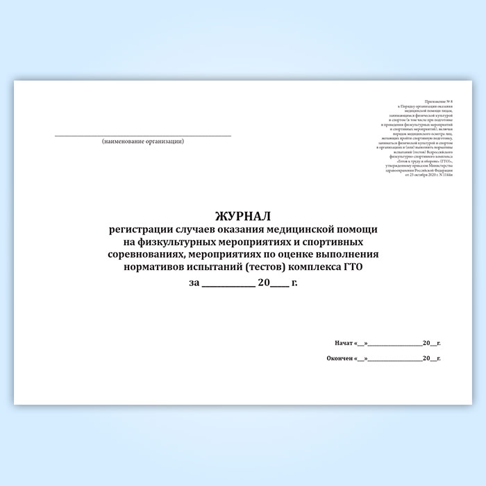 Журнал регистрации случаев оказания медицинской помощи на физкультурных мероприятиях и спортивных соревнованиях, мероприятиях по оценке выполнения нормативов испытаний (тестов) комплекса ГТО в Химках купить
