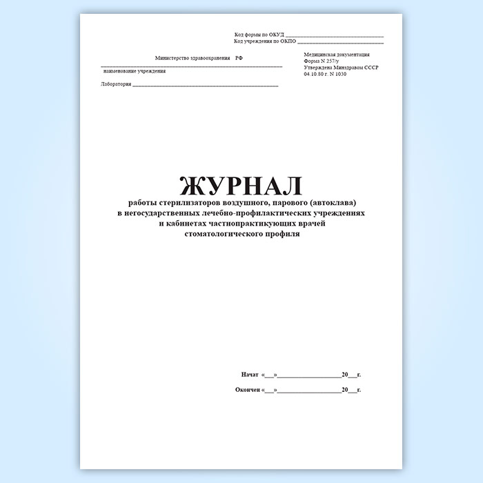 Журнал работы стерилизаторов воздушного, парового (автоклава) в негосударственных лечебно-профилактических учреждениях и кабинетах частнопрактикующих врачей стоматологического профиля (форма 257/у) в Химках купить