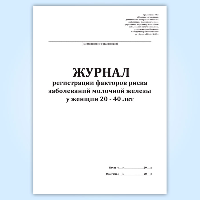Журнал регистрации факторов риска заболеваний молочной железы у женщин 20-40 лет в Химках купить