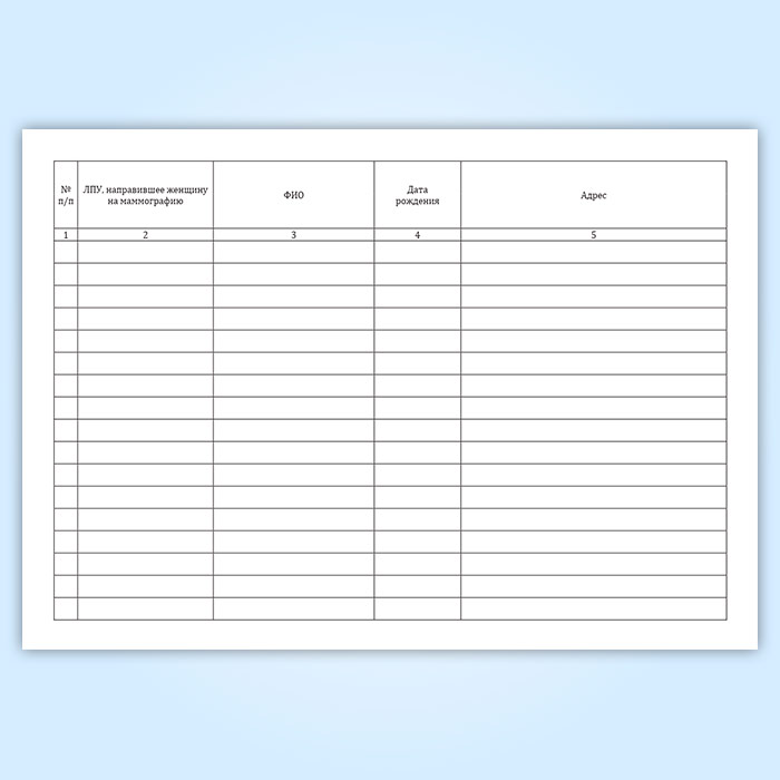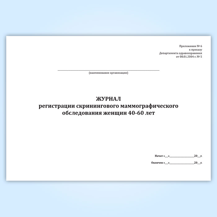 Журнал регистрации скринингового маммографического обследования женщин 40-60 лет в Химках купить