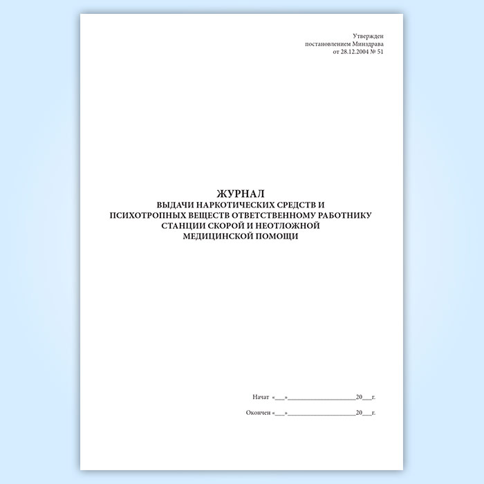 Журнал выдачи наркотических средств и психотропных веществ ответственному работнику станции скорой и неотложной медицинской помощи в Химках купить