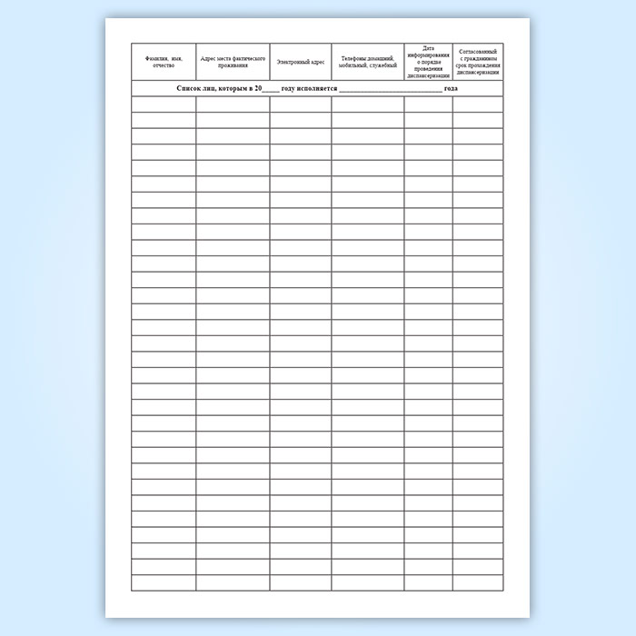 Поименный и повозрастной список граждан терапевтического, в том числе цехового, участка (участка врача общей практики (семейного врача)) в Химках купить