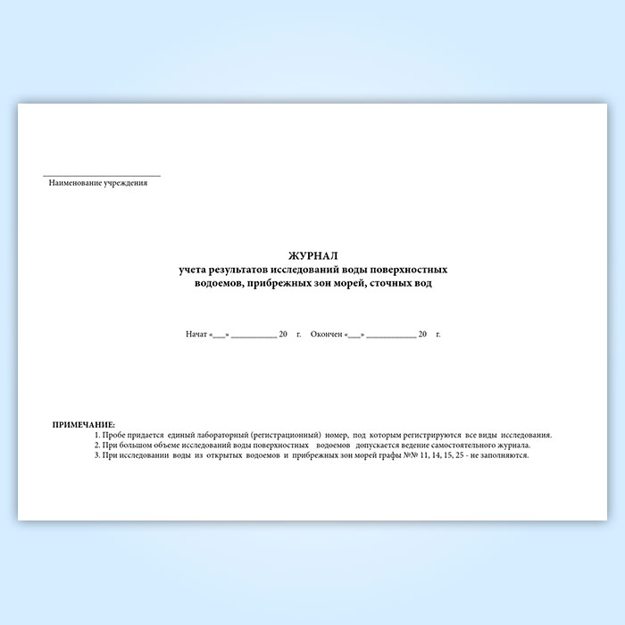 Журнал учета результатов исследований воды поверхностных водоемов, прибрежных зон морей, сточных вод (форма № 324-у) в Химках купить