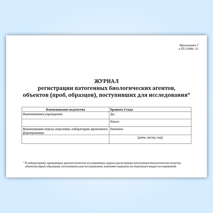 Журнал регистрации патогенных биологических агентов, объектов (проб, образцов), поступивших для исследования в Химках купить