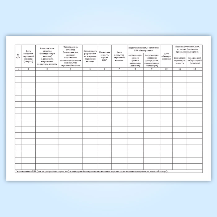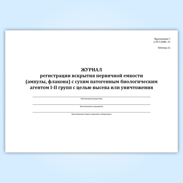 Журнал регистрации вскрытия первичной емкости (ампулы, флакона) с сухим патогенным биологическим агентов I-II групп с целью высева или уничтожения в Химках купить