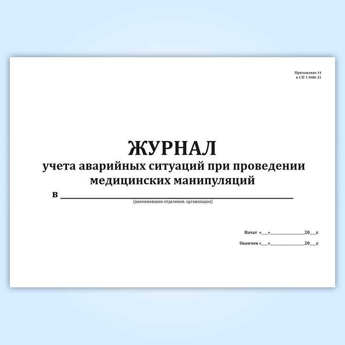 Журнал учета аварийных ситуаций при проведении медицинских манипуляций (СанПиН 3.3686-21) в Химках купить