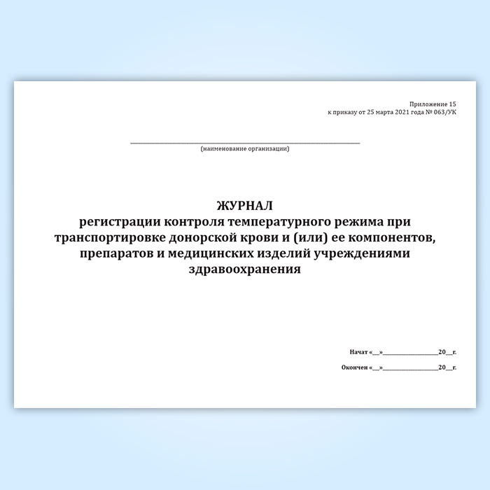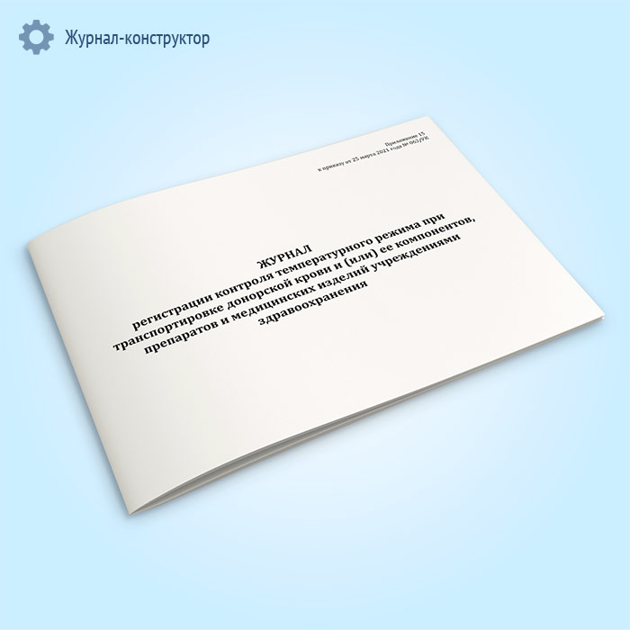 Журнал регистрации контроля температурного режима при транспортировке донорской крови и (или) ее компонентов, препаратов и медицинских изделий учреждениями здравоохранения в Химках купить