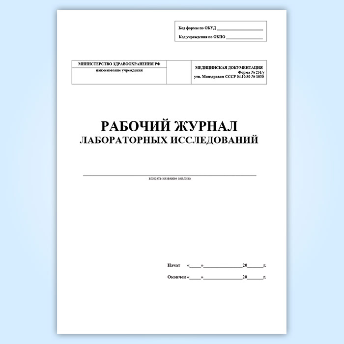 Рабочий журнал лабораторных исследований (форма 251/у) в Химках купить