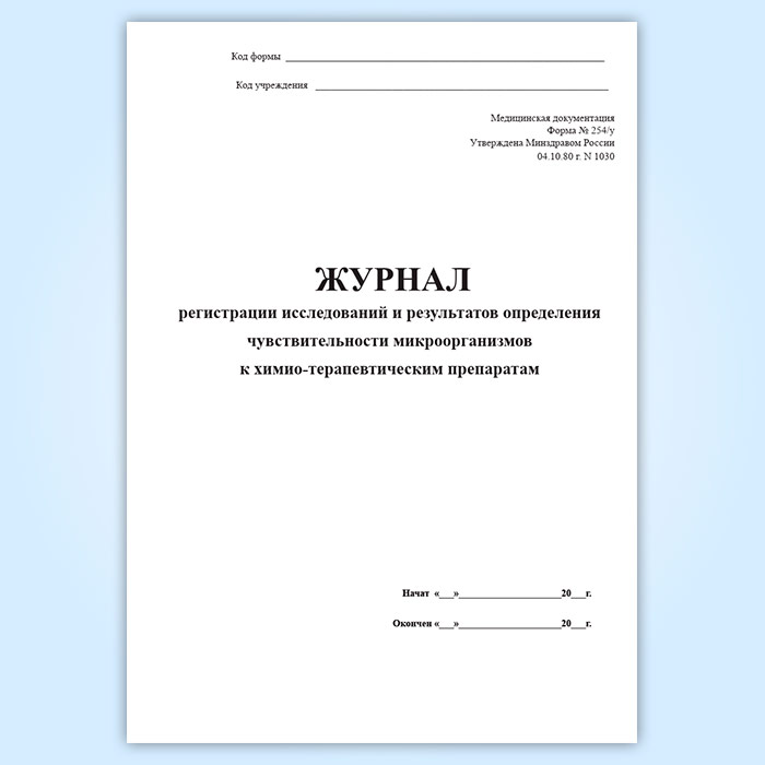Журнал регистрации исследований и результатов определения чувствительности микроорганизмов к химио-терапевтическим препаратам (форма 254/у) в Химках купить