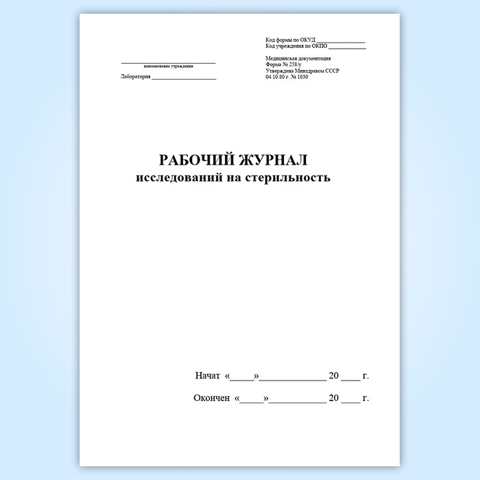 Рабочий журнал исследований на стерильность (форма 258/у) в Химках купить