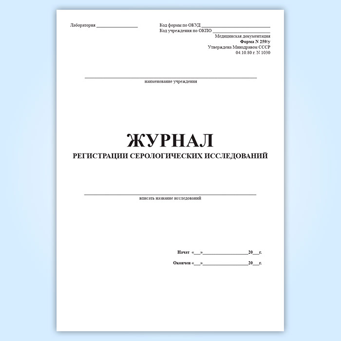 Журнал регистрации серологических исследований (форма 259/у) в Химках купить