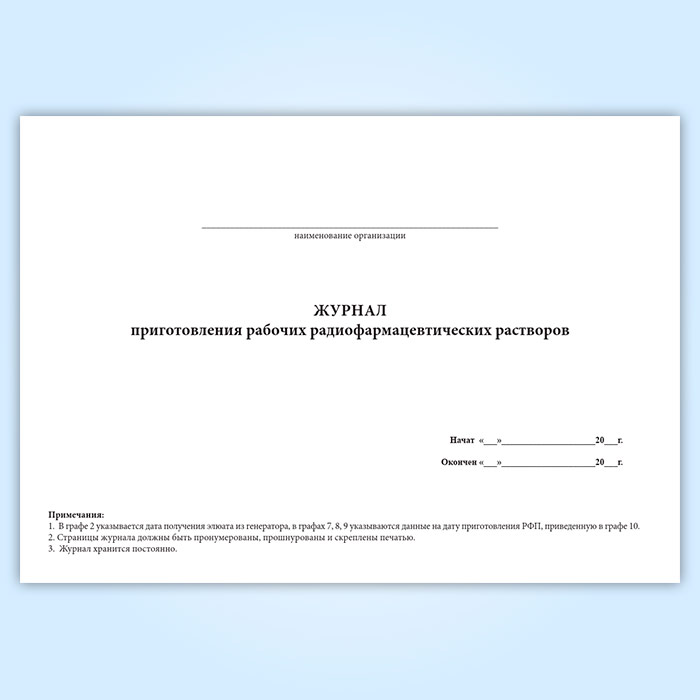 Журнал приготовления рабочих радиофармацевтических растворов в Химках купить