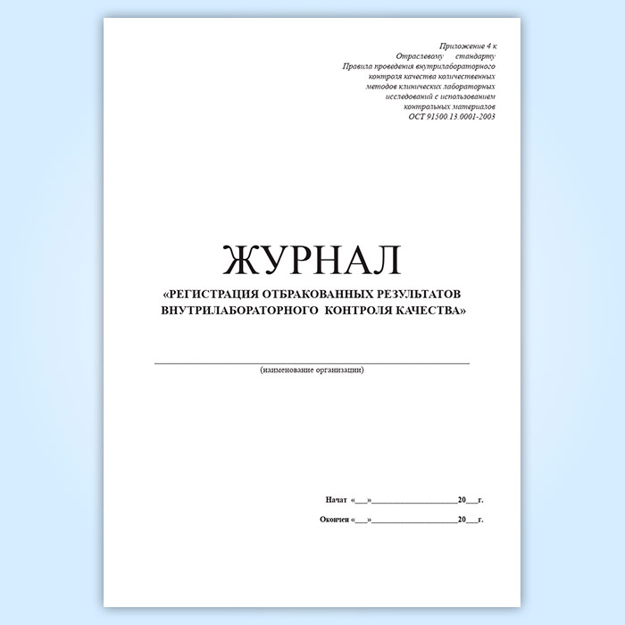 Журнал регистрации отбракованных результатов внутрилабораторного контроля качества в Химках купить