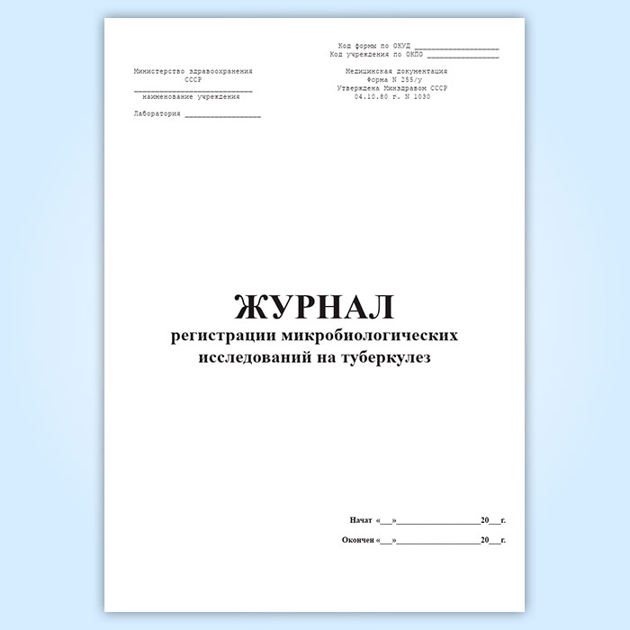 Журнал регистрации микробиологических исследований на туберкулез (форма 255/у) в Химках купить