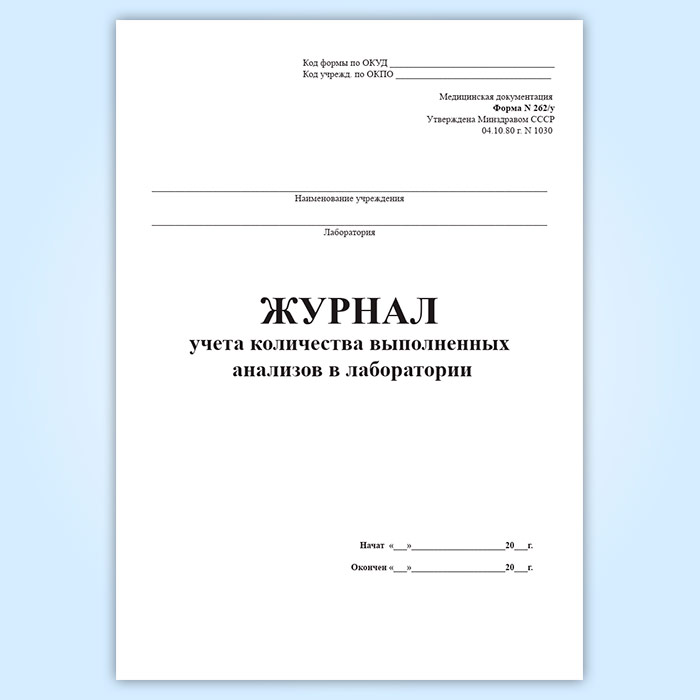 Журнал учета количества выполненных анализов в лаборатории (форма 262/у) в Химках купить