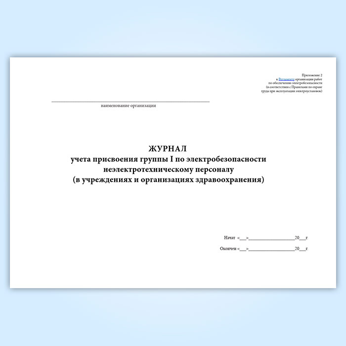 Журнал учета присвоения группы 1 по электробезопасности неэлектротехническому персоналу (в учреждениях и организациях здравоохранения) в Химках купить
