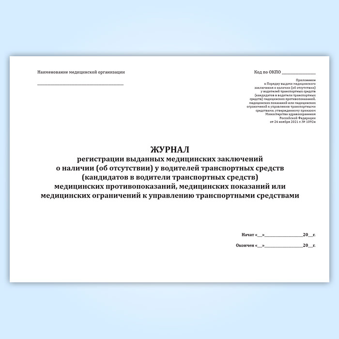 Журнал регистрации выданных медицинских заключений о наличии (об отсутствии) у водителей транспортных средств (кандидатов в водители транспортных средств) медицинских противопоказаний, медицинских показаний или медицинских ограничений к управлению транспортными средствами в Химках купить