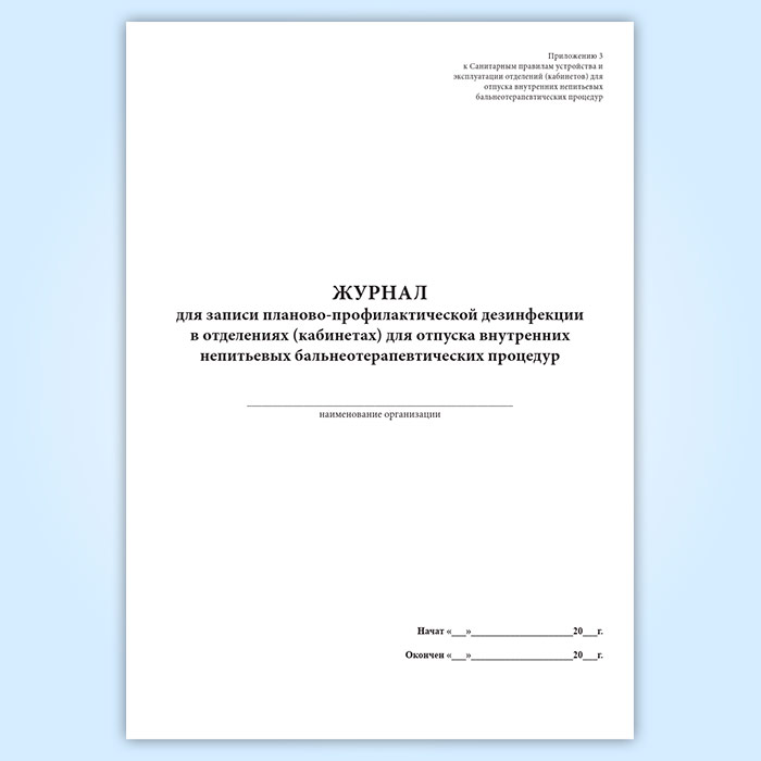 Журнал для записи планово-профилактической дезинфекции в отделениях (кабинетах) для отпуска внутренних непитьевых бальнеотерапевтических процедур в Химках купить