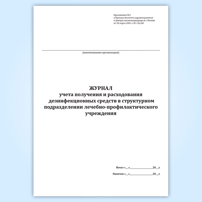 Журнал учета получения и расходования дезинфекционных средств в структурном подразделении лечебно-профилактического учреждения в Химках купить
