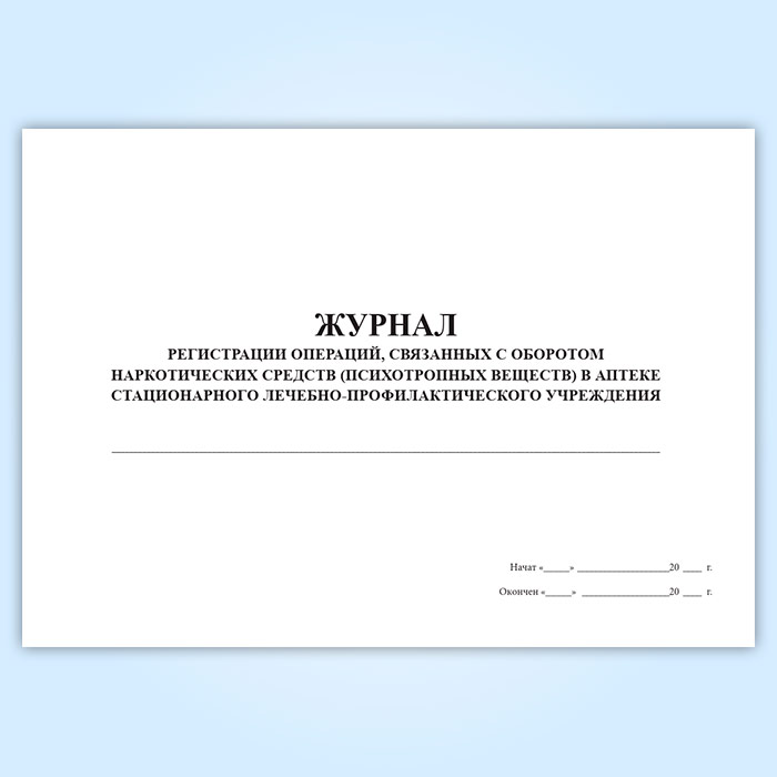 Журнал регистрации операций, связанных с оборотом наркотических средств и психотропных веществ в аптеке медицинской организации в Химках купить