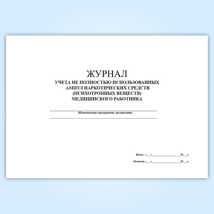 Журнал учета не полностью использованных ампул наркотических средств (психотропных веществ) медицинского работника в Химках купить