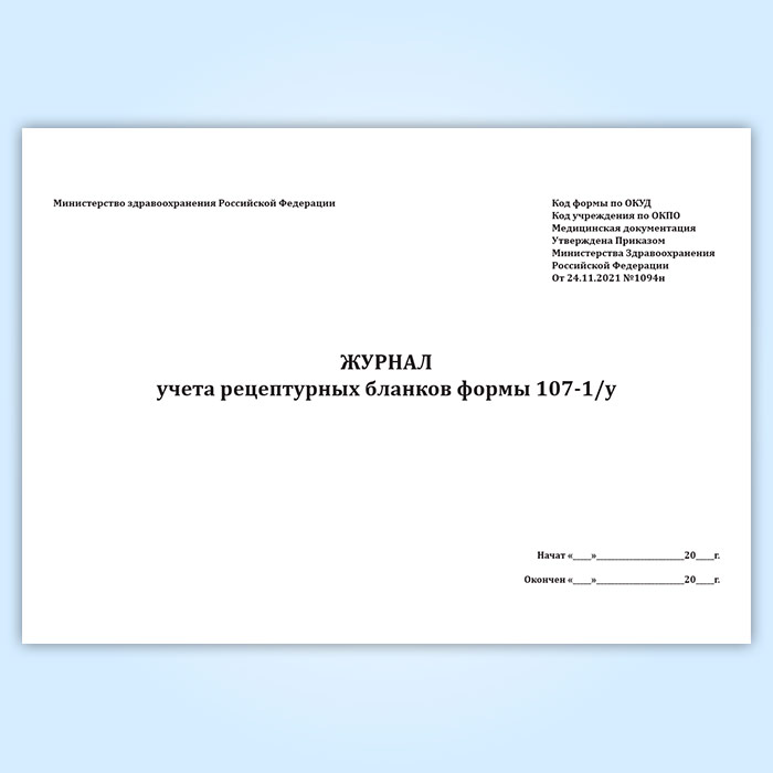 Журнал учета рецептурных бланков формы 107-1/у (новый) (Приказ Минздрава России от 24.11.2021 N 1094н) в Химках купить