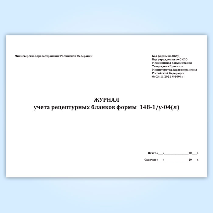 Журнал учета рецептурных бланков формы 148-1/у-04(л) (новый) (Приказ Минздрава России от 24.11.2021 N 1094н) в Химках купить