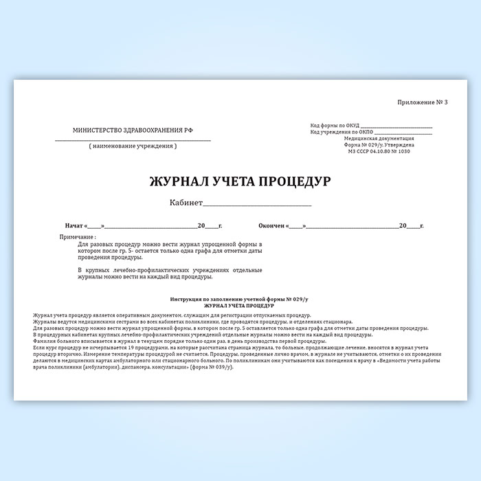 Журнал учета процедур (форма № 029/у) в Химках купить