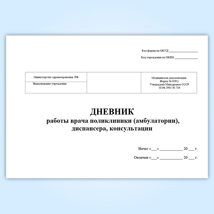 Дневник работы врача поликлиники (амбулатории), диспансера, консультации (форма 039/у) в Химках купить