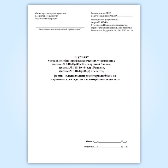 Журнал учета в лечебно-профилактических учреждениях формы 148-1/у-88 «Рецептурный бланк», 148-1/у-04(л) «Рецепт», 148-1/у-06(л) «Рецепт», формы «Специальный рецептурный бланк на наркотическое средство и психотропное вещество форма» в Химках купить