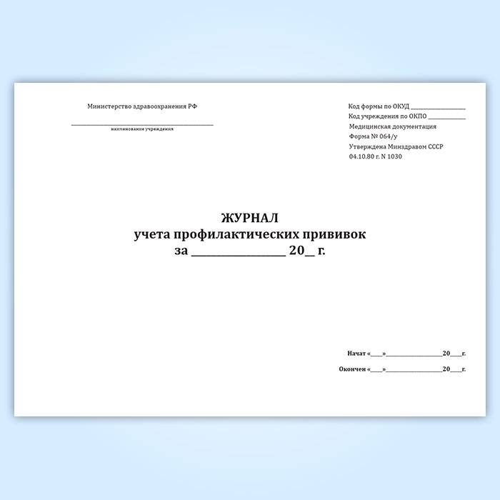 Журнал учета профилактических прививок (форма № 064/у) в Химках купить