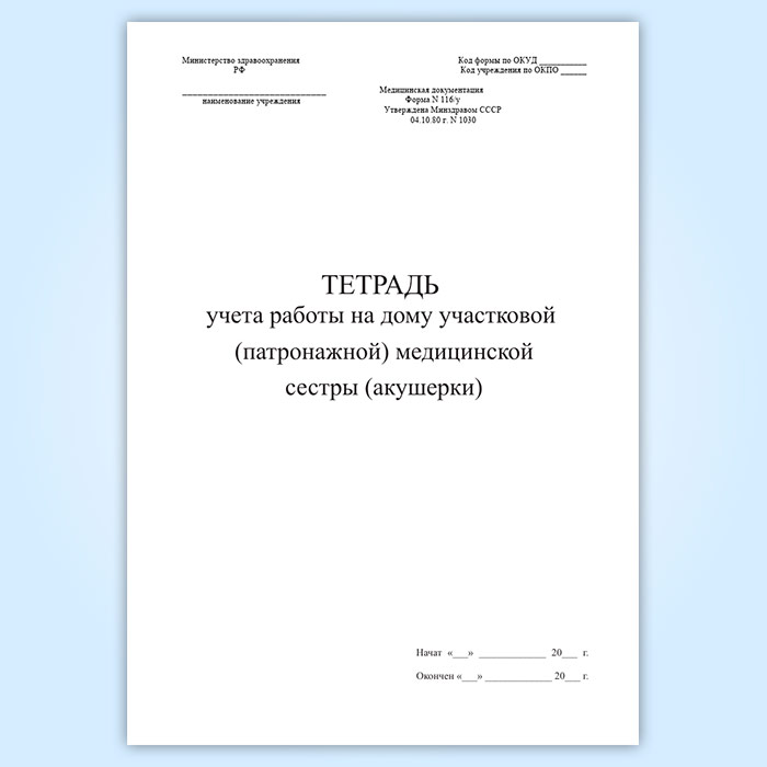 Тетрадь учета работы на дому участковой (патронажной) медицинской сестры (акушерки) (форма 116/у) в Химках купить