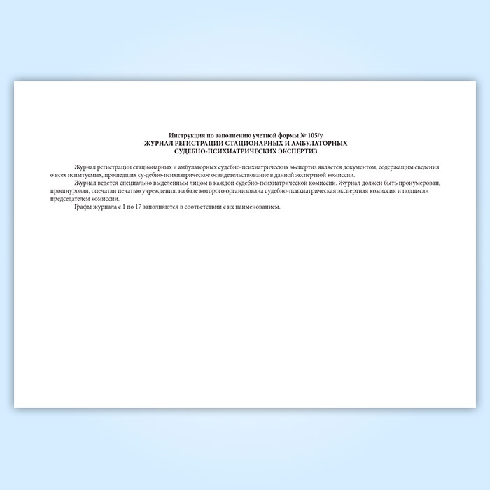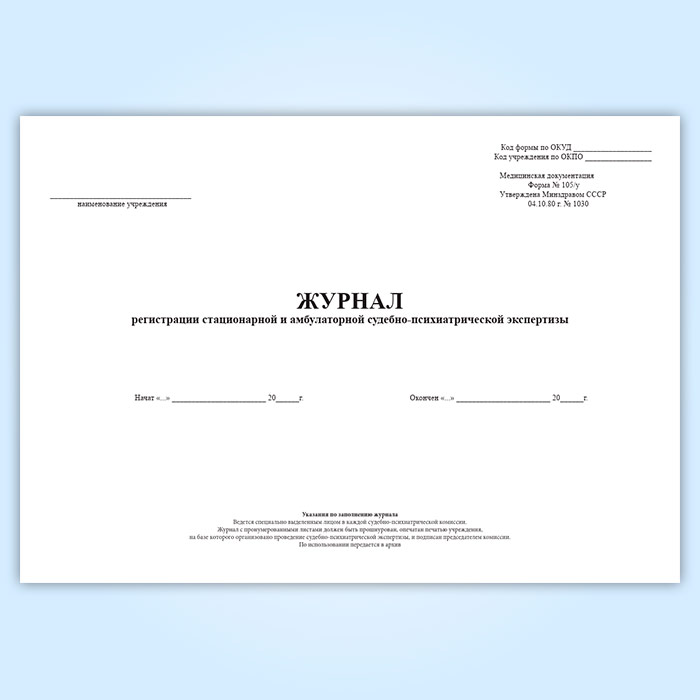 Журнал регистрации стационарной и амбулаторной судебно-психиатрической экспертизы (форма 105/у) в Химках купить