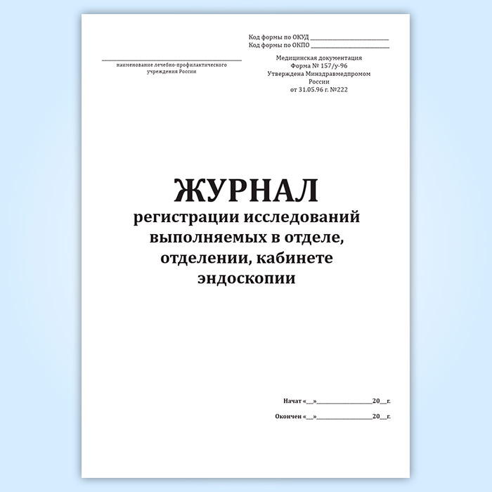 Журнал регистрации исследований выполняемых в отделе, отделении, кабинете эндоскопии (форма № 157/у-96) в Химках купить
