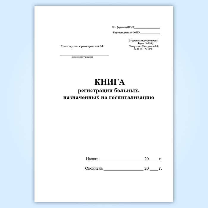 Книга регистрации больных, назначенных на госпитализацию (форма 034/у) в Химках купить