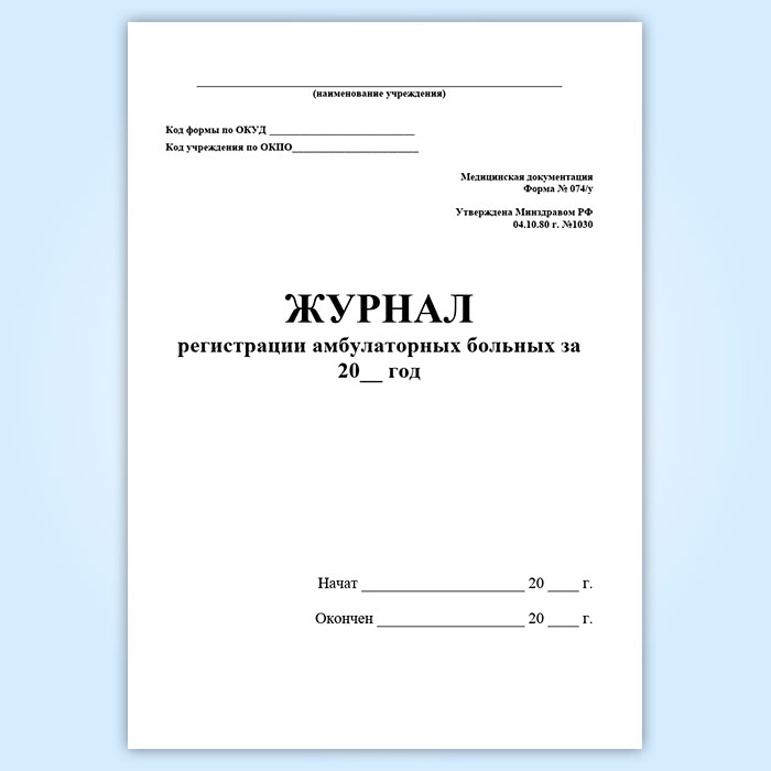 Журнал регистрации амбулаторных больных (форма 074/у) в Химках купить