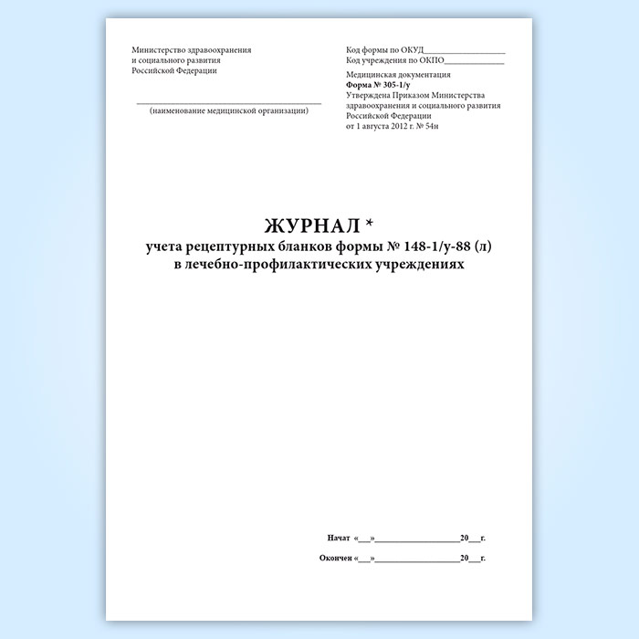 Журнал учета рецептурных бланков формы № 148-1/у-88 (л) в лечебно-профилактических учреждениях форма 305/у-1 в Химках купить