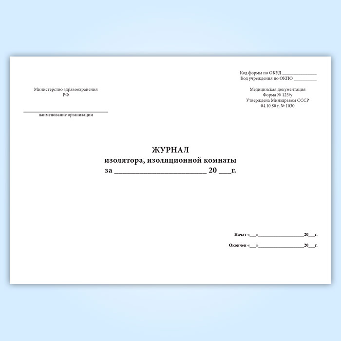 Журнал изолятора, изоляционной комнаты (форма 125/у) в Химках купить