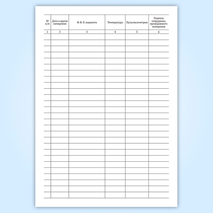 Журнал регистрации показаний пульсоксиметра и температуры тела пациентов в Химках купить