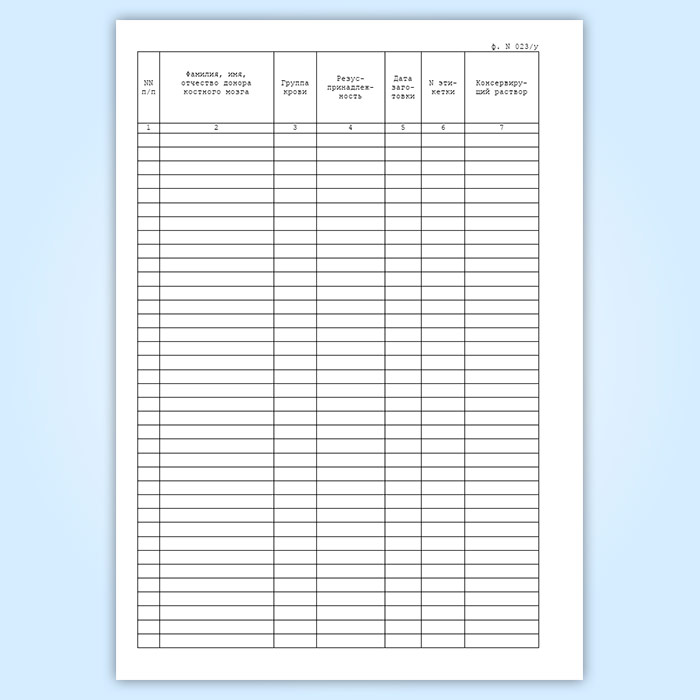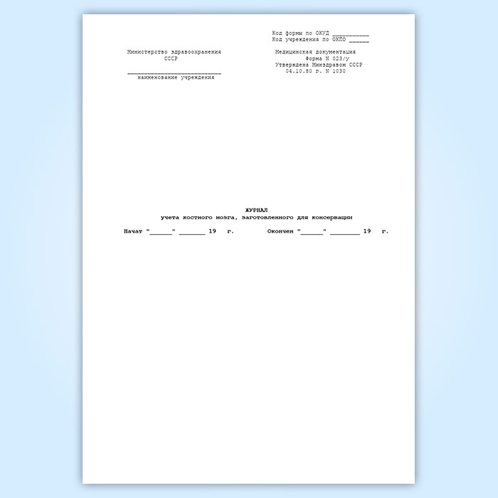 Журнал учета костного мозга, заготовленного для консервации (форма 023/у) в Химках купить